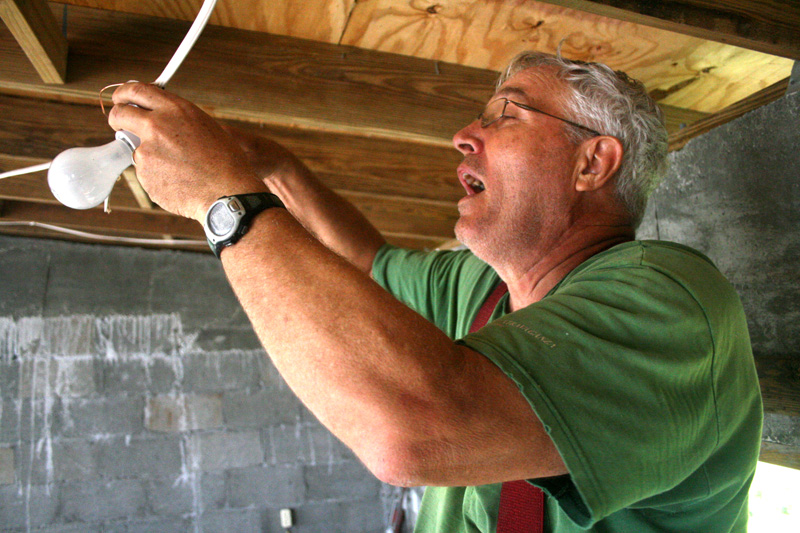 Martin was their electrician, at least for the lights. He worked digillently with his hands above his head to rig up those lights. Initially, I had them rigged up like a set of christmas tree lights in parallel, however this dropped the wattage down from each bulb and basically only works if you’re installing only 1 light. So, good old Martin rewired the lights in series, however some of the wires got crossed with a short. So he rewired them again, but this time the switch was in the wrong location, so he rewired them again. Poor Martin, I thought; he has definitely left a part of himself with those darned lights.