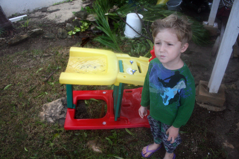 I had to time the waves and drive stop-and-go to make it through, using the vehicle like a snowplow at times to forage through the seaweed… hitting rocks and debris throw into our path by the fierce winds. But when you’ve got a kid with blood shooting out of his severed finger in your car, you find a way. The nurse took one look and said, “you need to see another nurse.” The other nurse took one look and said, “you need to see a doctor.” However the doctor was behind an ocean of water that used to be Rock Sound airport. Once we did finally get to a doctor the next day, he took one look and said, “you need to get to Nassau.” Don’t worry, the boy is fine, and my car is still running! However, the whole ordeal was completely exhausting and turned the stress level beyond healthy… I literally got light-headed from all the blood.