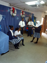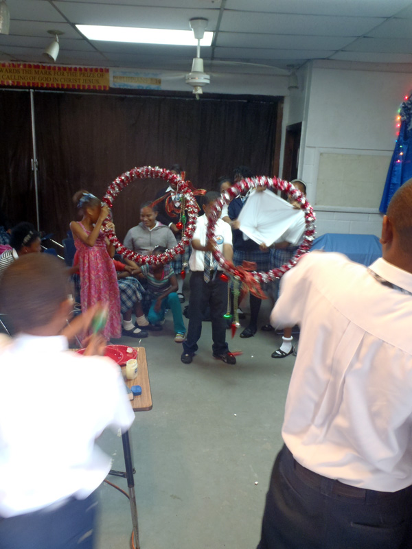 The children thought it was hilarious. They all did a good job participating and it was fun to watch them carry cotton balls on their noses, hurl marshmallows through wreathes, shake jingle bells out of their backs, and a myriad of other whimsical competitions that made the whole event a joy. The 11th graders came out with the win over the other classes, but everyone wins in the end with a great Christmas program.
