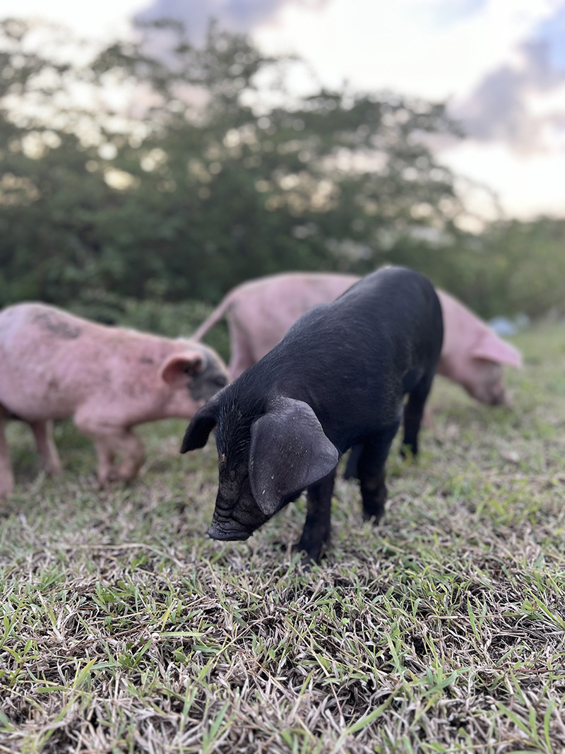 One highlight of this location were the pigs that happened to be out rooting around for trash and grub as we drove past. We chased them down the hill a ways, and I kept trying to take their picture to little avail. The volcanic soil with a mix of limestone is rich with plant-life and flowers and very reminiscent of our experiences in the Bahamas.
